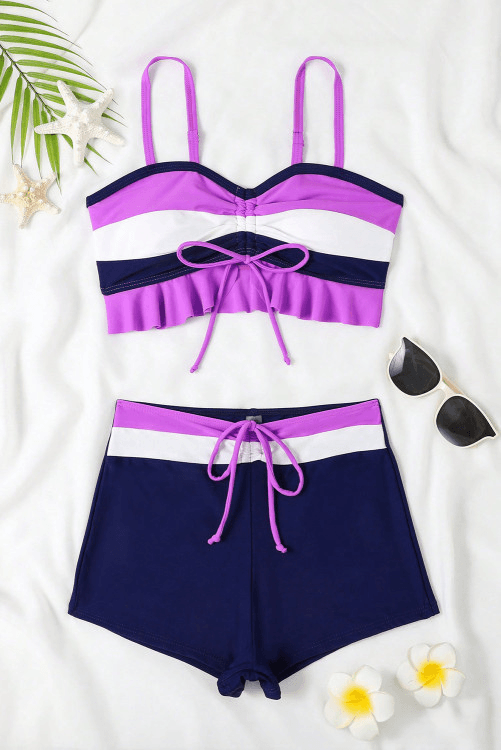 Be the first to review “Colour Block Ruffled Tie Shorts Bikini”