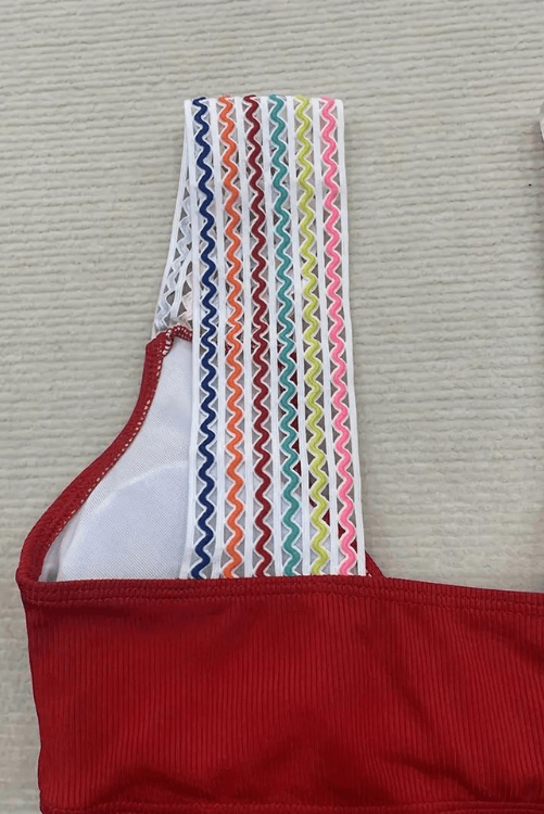 Crossover Ribbed Ricrac Trim High Waist bikini