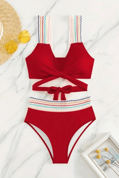 Be the first to review “Crossover Ribbed Ricrac Trim High Waist bikini”