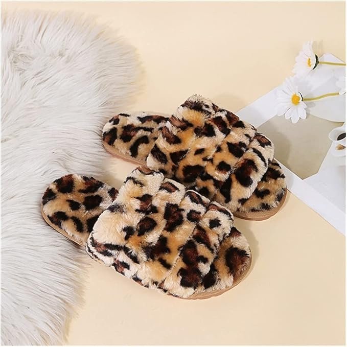 Leopard Open Toe Plush Slippers